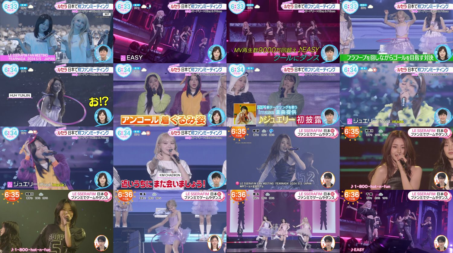 240702 LE SSERAFIMのTVニュース「ZIP! & めざましテレビ」 | LE SSERAFIM’s TV News 「ZIP! & Mezamashi TV」 (2024-07-02)