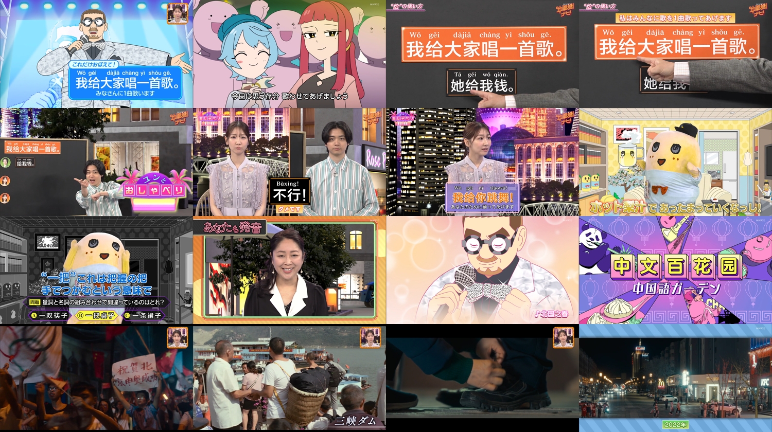 「給」を使って、「誰それのために、何々する」といった、人に利益を与える文の作り方を学びます▽クイズ「ふなチャレ!」。箸、机、スカート、どんな量詞で数える?▽後半はエンタメ情報。世界的に評価が高いジャ・ジャンクー監督の最新作「新世紀ロマンティクス」を紹介します。激動の変化を遂げた21世紀の中国、すれ違う女と男の人生を描きます。