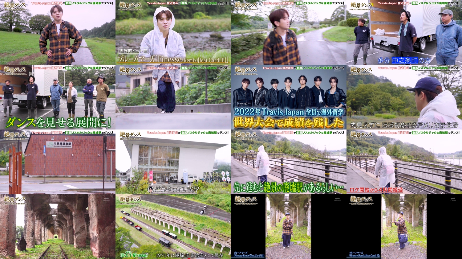今回は、Travis Japan・宮近海斗が“絶景ダンス”に挑む!目的地は、群馬にある「ノスタルジックな廃墟駅」。道中では、群馬の大自然やさまざまな人との出会いが待ち受ける1人過酷旅!果たして、無事に絶景へたどり着けるのか?そして披露するダンスは、ブルーノ・マーズの世界的ヒット曲「Finesse(Remix)」。幻想的な廃墟駅を舞台に繰り広げられる圧巻のダンスは必見!!