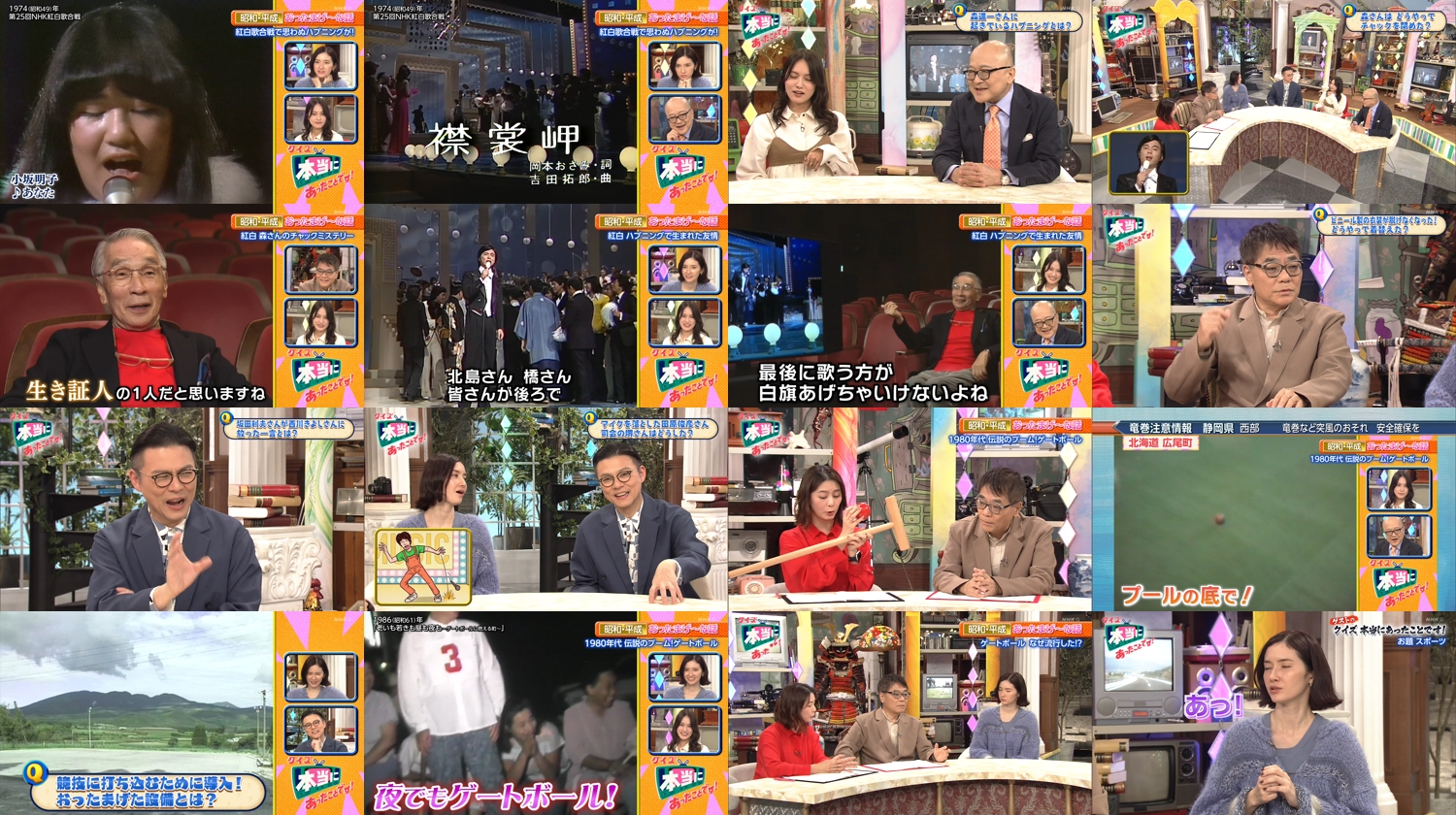 NHKアーカイブスを堀り起こして見えてきたのは・・・紅白歌合戦でおきていた衝撃のハプニング、1980年代に大ブームとなったゲートボールで巻き起こった社会現象など。「信じがたいけど本当のこと」をクイズ形式で楽しんでいく。答えの背景にはそれぞれに奥深い理由があり、そこから、今も昔も変わらない人々の営みや価値観も見えてくる。テーマにちなんだスタジオゲストの皆さんが出すクイズも必見!