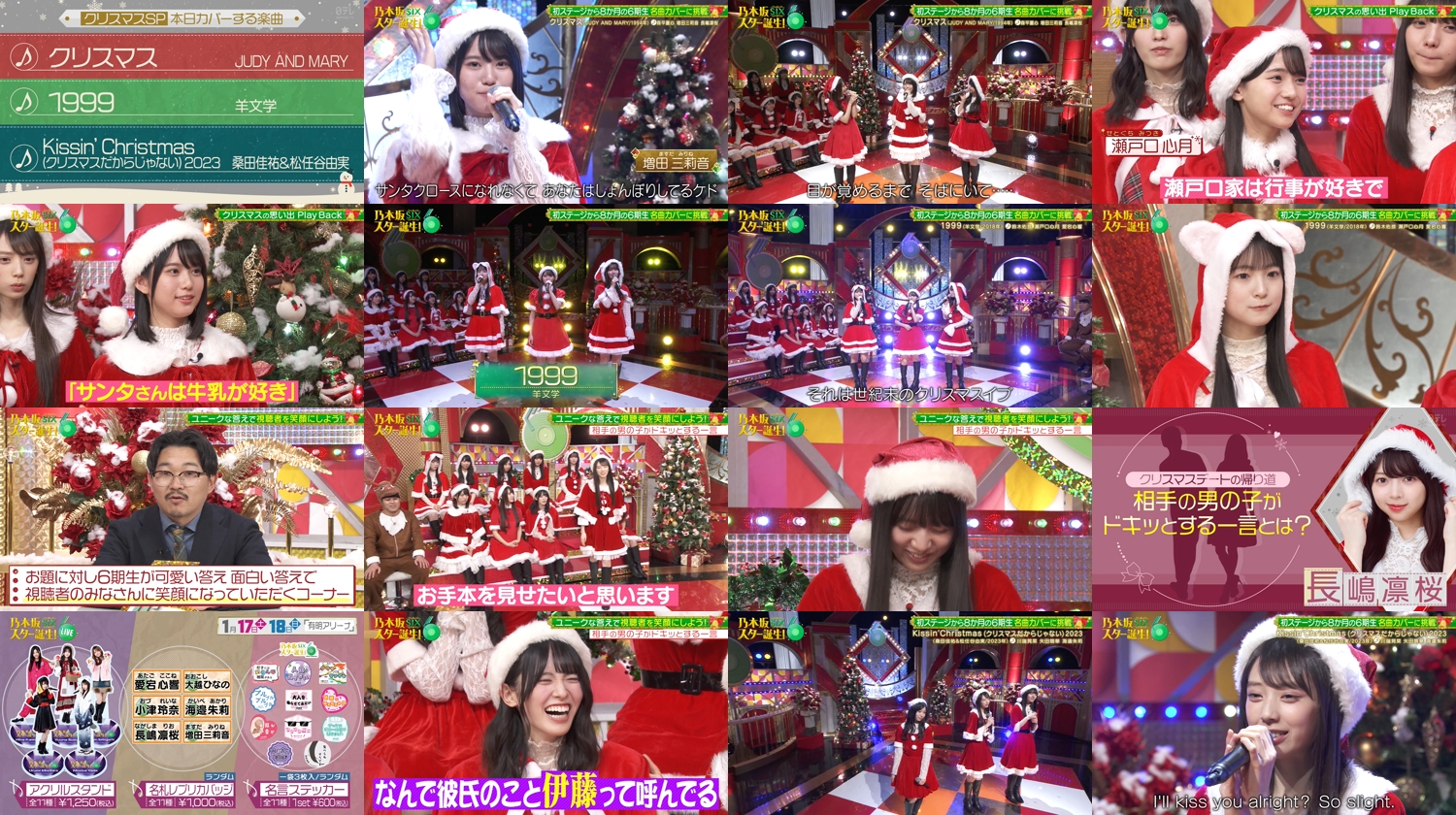 初ステージから8か月!乃木坂46・6期生が激かわサンタ姿でクリスマス名曲カバー挑戦!MCオズワルド▽愛宕心響・鈴木佑捺・瀬戸口心月が超広音域の難曲・羊文学「1999」でハモる▽桑田佳祐&松任谷由実の伝説のコラボ名曲を海邉朱莉・川端晃菜・矢田萌華が熱唱▽長嶋凛桜・増田三莉音・森平麗心がジュディマリ「クリスマス」▽幼少期のクリスマス(秘)エピソード▽クリスマス告白でグループ内抗争勃発!?▽舞台裏はHulu