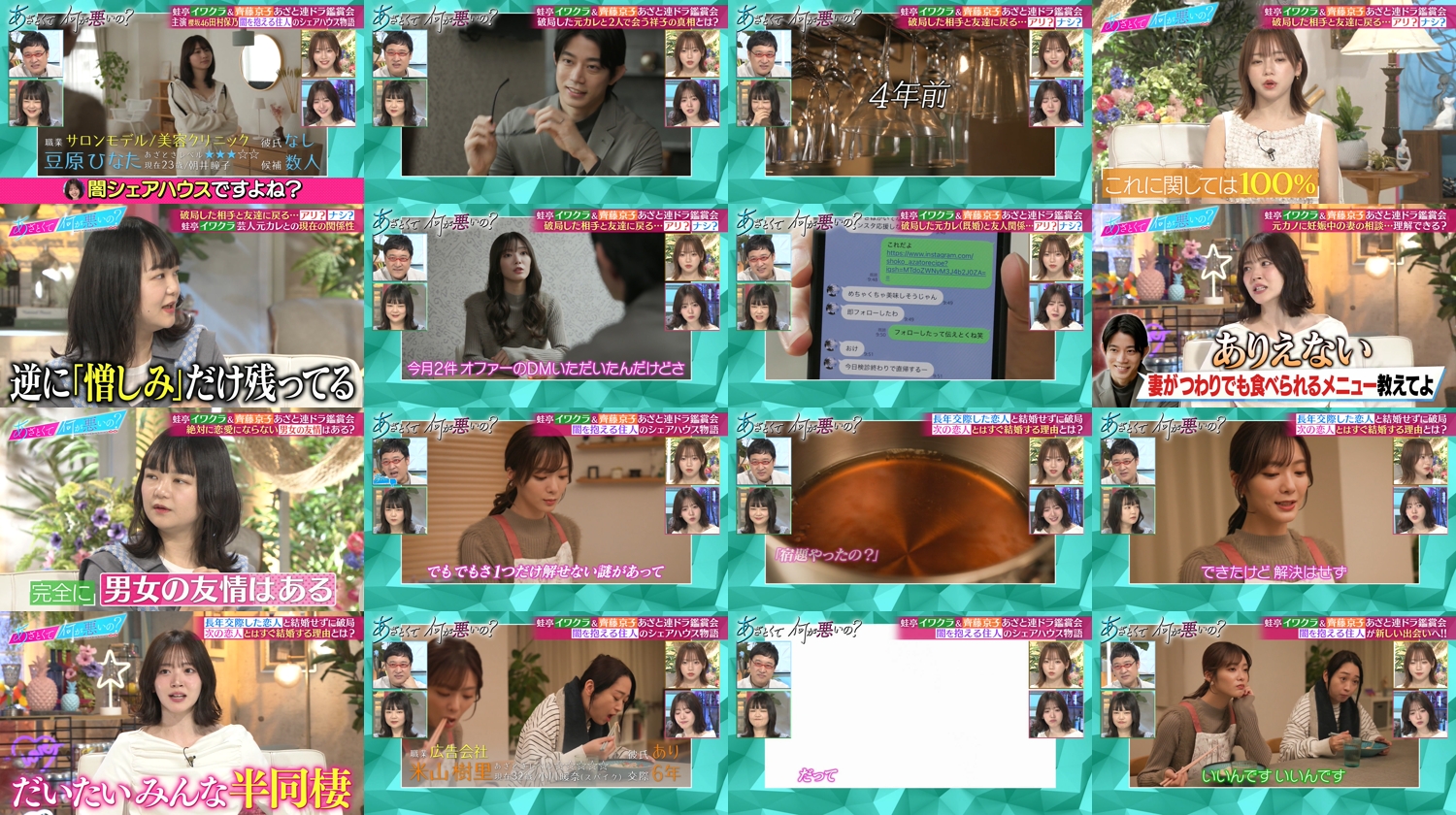 今夜の「あざとくて何が悪いの?」は齊藤京子と蛙亭イワクラが登場!