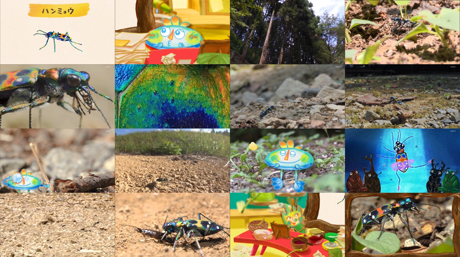 高精細の動画とアニメでつづる5分の昆虫物語。小さな世界で暮らす出版社の編集部員、チャッキとミックが「ものすごい図鑑」をつくるため、ハンミョウの生態にせまる▽ハンミョウの体はとってもカラフル!スーパーズームレンズで模様を観察▽すばやいあしの動きをスローレンズで見よう▽大きなあごでえものをとらえる!▽光のあて方で体の模様が変わる?▽美しい昆虫の世界へようこそ!声 川栄李奈、まひる(ガンバレルーヤ)