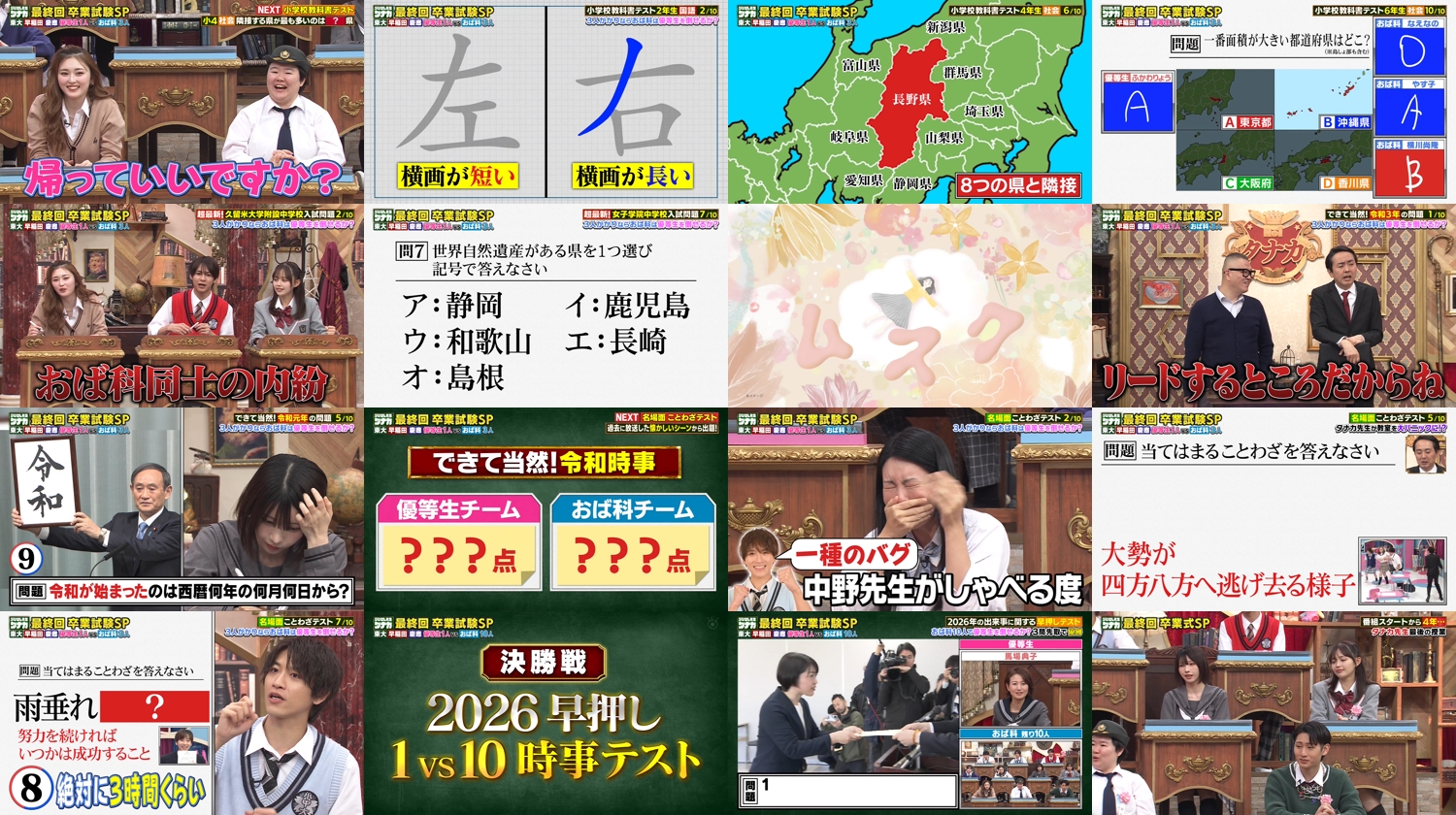 おば科10人vs東大早慶優等生3人の変則チーム対抗戦!入試問題&漢検&時事問題…力を合わせ卒業単位をつかみ取れ!▽涙の卒業式…やっぱり最後はアレが登場